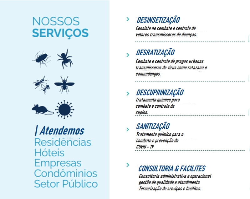 A Eliminar dedetizadora tem como objetivo atender com excelência todas às demandas de nossos clientes a partir do desenvolvimento e oferta de produtos e serviços que contribuam para a melhoria da qualidade de vida das pessoas, gerando riqueza de forma sustentável.